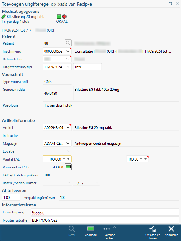 Deze nieuwe feature is ontwikkeld voor ziekenhuisapotheken die gebruikmaken van Recip-e om aan de apotheekbalie medicatie voor ambulante patiënten af te leveren.