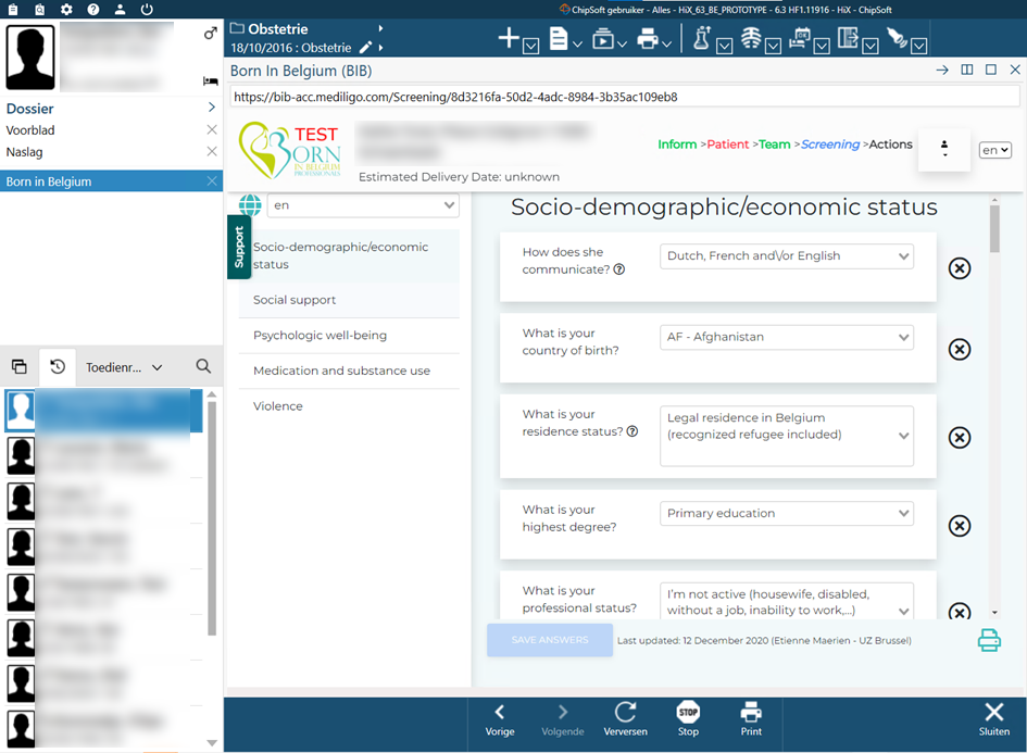 De tool ‘Born in Belgium’ is een online, gedeeld platform dat informatie over de psychosociale situatie van de zwangere vrouw centraliseert en ter beschikking stelt van haar hulp- en zorgverleners uit de (para)medische en sociale sector, dit volledig conform de privacywetgeving (GDPR). Zorgverleners kunnen dit platform nu rechtstreeks binnen HiX gebruiken en beschikken meteen over de juiste patiëntgegevens.